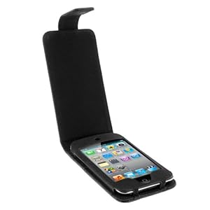 ProTek® Black Leather Folio Flip Hard Plastic Insert Case Cover for Apple iPod Touch 4th Gen Generation 4G 8GB 32GB 64GB